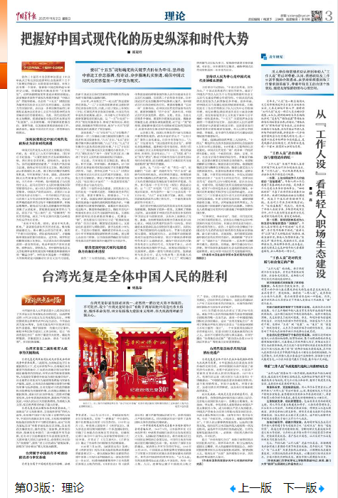 “计熟事定,举必有功”。当前,我们比历史上任何时期都更接近、更有信心和能力实现中华民族伟大复兴的目标,同时必须付出更为艰巨、更为艰苦的努力。党的二十届四中全会擘画了中国式现代化的阶段性目标任务以及时间表路线图,奋斗正当其时、正逢其势,我们要切实肩负起中国式现代化的时代重任,深刻把握“守正不渝”与“创新不止”的辩证统一,以历史主动精神克难关、战风险、迎挑战,集中力量办好自己的事,续写经济快速发展和社会长期稳定两大奇迹新篇章,奋力开创中国式现代化建设新局面。