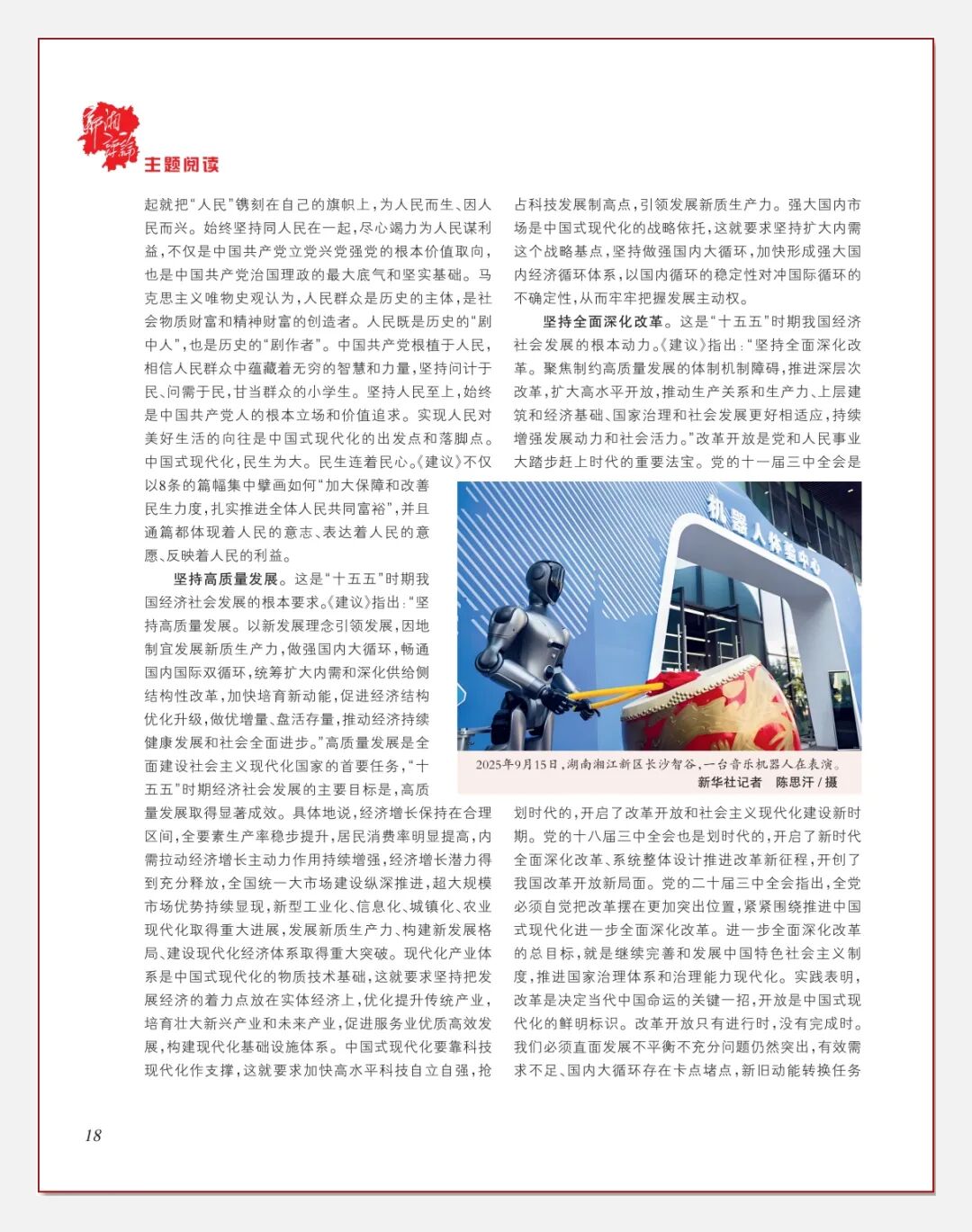 坚持党的全面领导。这是“十五五”时期我国经济社会发展的根本保证。《中共中央关于制定国民经济和社会发展第十五个五年规划的建议》(以下简称《建议》)指出:“坚持党的全面领导。坚决维护党中央权威和集中统一领导,提高党把方向、谋大局、定政策、促改革能力,把党的领导贯穿经济社会发展各方面全过程,为我国社会主义现代化建设提供根本保证。”全面建设社会主义现代化国家、全面推进中华民族伟大复兴,关键在党。拥有马克思主义科学理论指导是中国共产党鲜明的政治品格和强大的政治优势。中国共产党有着注重思想建党、理论强党的鲜明特色和光荣传统,因此站得更高、看得更远,对经济社会发展规律的把握更科学、更准确,制定的战略规划更真切、更可行。中国共产党始终把人民立场作为根本立场,把为人民谋幸福作为根本使命,坚持全心全意为人民服务的根本宗旨。党的利益与人民利益的高度一致性,确保党始终能够团结带领全国各族人民朝着共同目标奋进。中国共产党执政和长期执政的历史地位,决定了党拥有治国理政丰富的执政资源,并确保能够制定和实施长远规划。“五年计(规)划”编制和实施70多年,党始终是坚强领导者、推进者、执行者,彰显了“一张蓝图绘到底”的政治定力、战略自信。在“十五五”规划制定和实施中,坚持党的全面领导,首要的就是把党的领导落实到党和国家事业各领域各方面各环节,使党始终成为风雨来袭时全体人民最可靠的主心骨,确保中国式现代化建设始终沿着正确轨道前进。历史雄辩地证明:中国共产党是具有强大领导力执政力的政党。