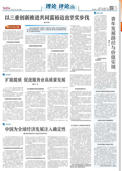 党的二十届四中全会强调,“十五五”时期经济社会发展的主要目标是“推动经济实现质的有效提升和量的合理增长,推动人的全面发展、全体人民共同富裕迈出坚实步伐,确保基本实现社会主义现代化取得决定性进展”。今年是“十五五”开局之年,在实现共同富裕的道路上具有关键性节点作用,需要大力推进与之相应的独具中国特色的理论、制度和实践方面的探索创新。