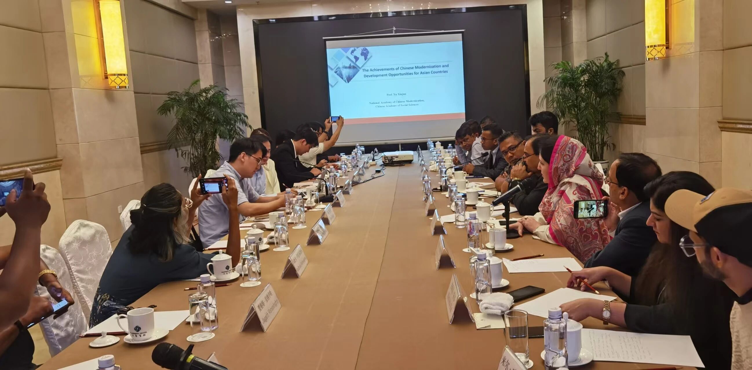 2025年9月17日,中国式现代化研究院副院长徐秀军研究员受中联部国际交流中心邀请,为“南亚东南亚多国友好人士考察团”作题为“中国式现代化的成就及其对亚洲国家发展的机遇”的报告,报告分中国式现代化的成就、中国共产党在中国式现代化建设中的作用、亚洲国家的合作机遇三个部分,全面介绍了党的十八大以来,党领导团结全国人民推进中国式现代化建设事业取得的显著成就,分析了中国发展给包括南亚东南亚国家在内的亚洲国家发展带来的机遇。
