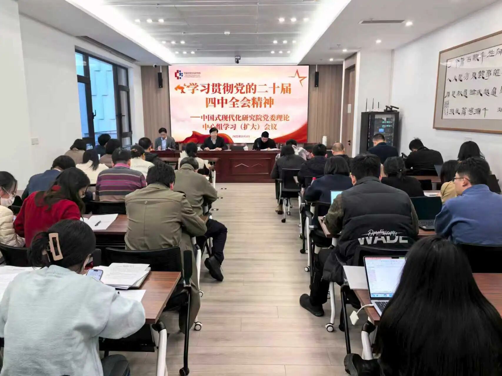 会议要求,“十五五”是我国基本实现社会主义现代化进程中承前启后的关键时期,也是中国式现代化研究院起步发展的重要时期。全体干部职工要原原本本学习习近平总书记在党的二十届四中全会上的重要讲话精神,学习《建议》和关于《建议》的说明,深入开展研究阐释,抓住契机、把握机遇,通过脚踏实地做好中国式现代化理论和实践问题研究,把个人科研工作与党和国家建设发展大局紧密结合,为以中国式现代化全面推进强国建设、民族复兴伟业贡献智慧和力量。