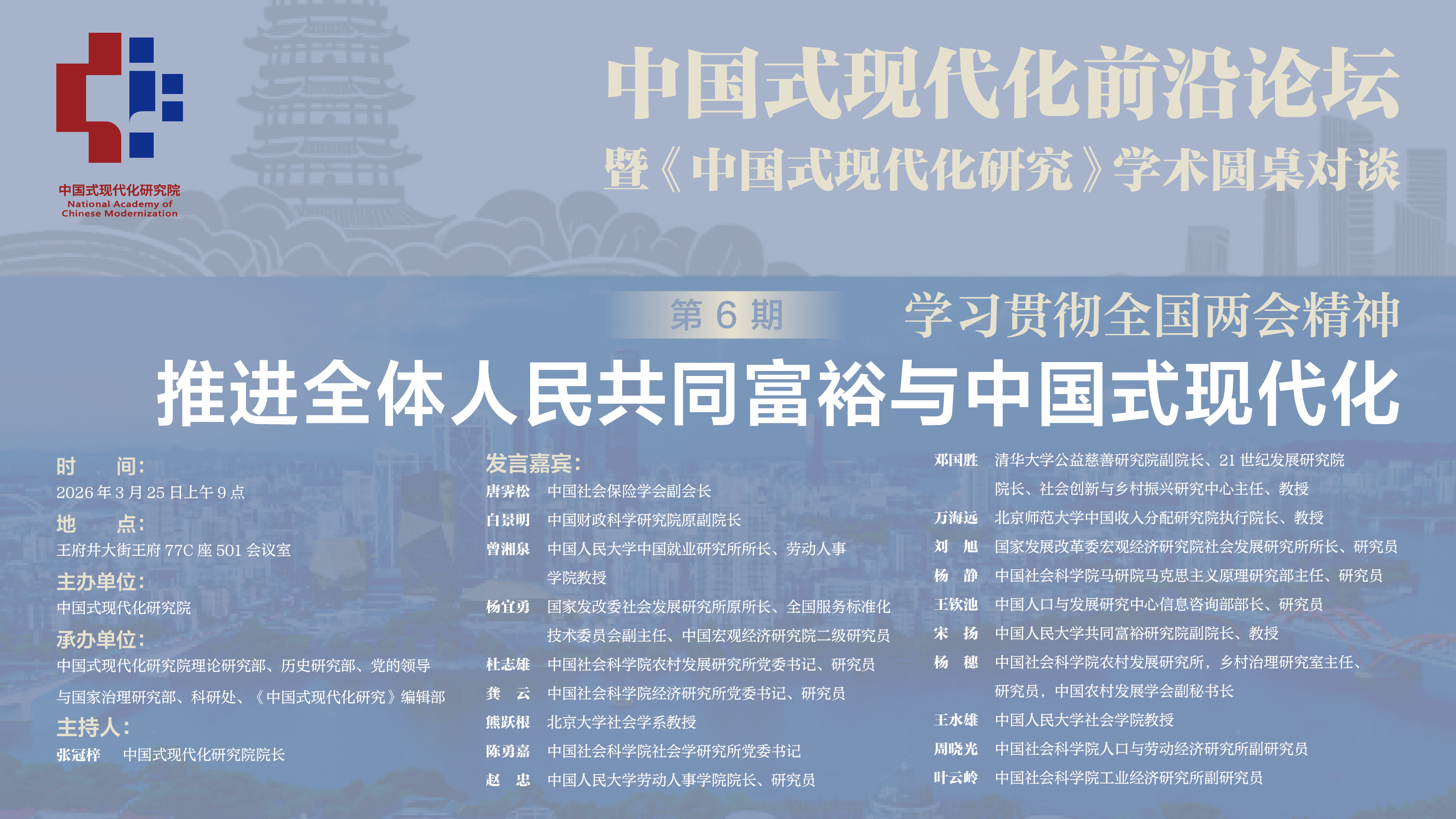 中国式现代化前沿论坛第6期暨《中国式现代化研究》学术圆桌对谈:学习贯彻全国两会精神推进全体人民共同富裕与中国式现代化